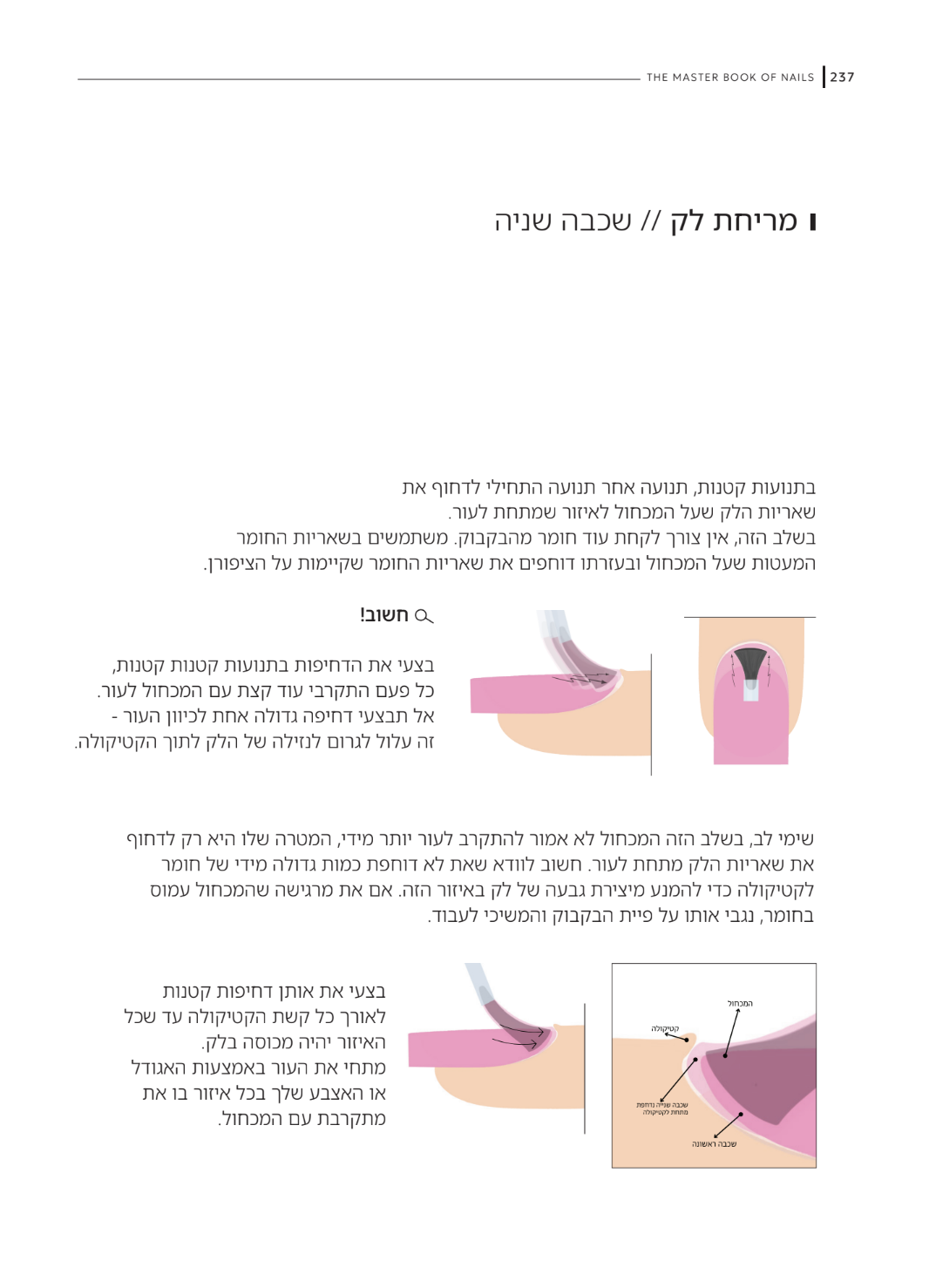 חלק ב' | הפרקטיקה: הסרה, מניקור משולב, שיוף כל הצורות, מבנה אנטומי וחיזוקים, מריחת לק מתחת לקטיקולה, פינישים.